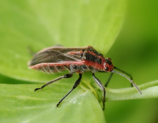 自宅ベランダに飛来してきた。体の側縁が赤色で縁どられ中央部にも赤いスジが引かれている。見慣れないカメムシだったので急いで車中のカメラを取りにいった。気温が低いせいかあまり活発でなかったことが幸いし飛び去られることなく撮影できた。食草はキンポウゲ科のボタンヅルやセンニンソウと言われている。